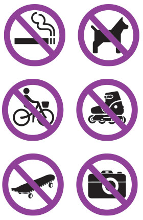 • Zonder toestemming enquêtes uit te voeren, goederen te verkopen, muziek te maken, drukwerk uit te delen