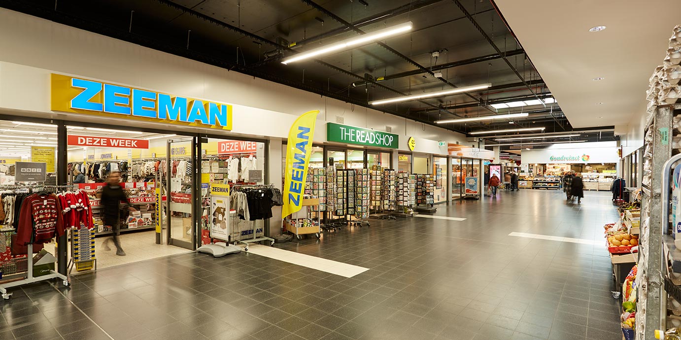 Klik op een locatiepunt om te zien welke winkel hier gevestigd is. Ter oriëntatie staan de grote winkelketens op de plattegrond aangegeven met hun logo.